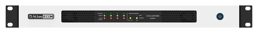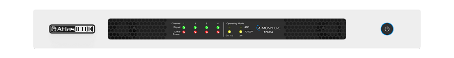 The AZA804 is ready to use out of the box in four-channel, 70V mode, with no additional configuration or network connectivity required, making them easily paired for use with AtlasIED Atmosphere signal processors.