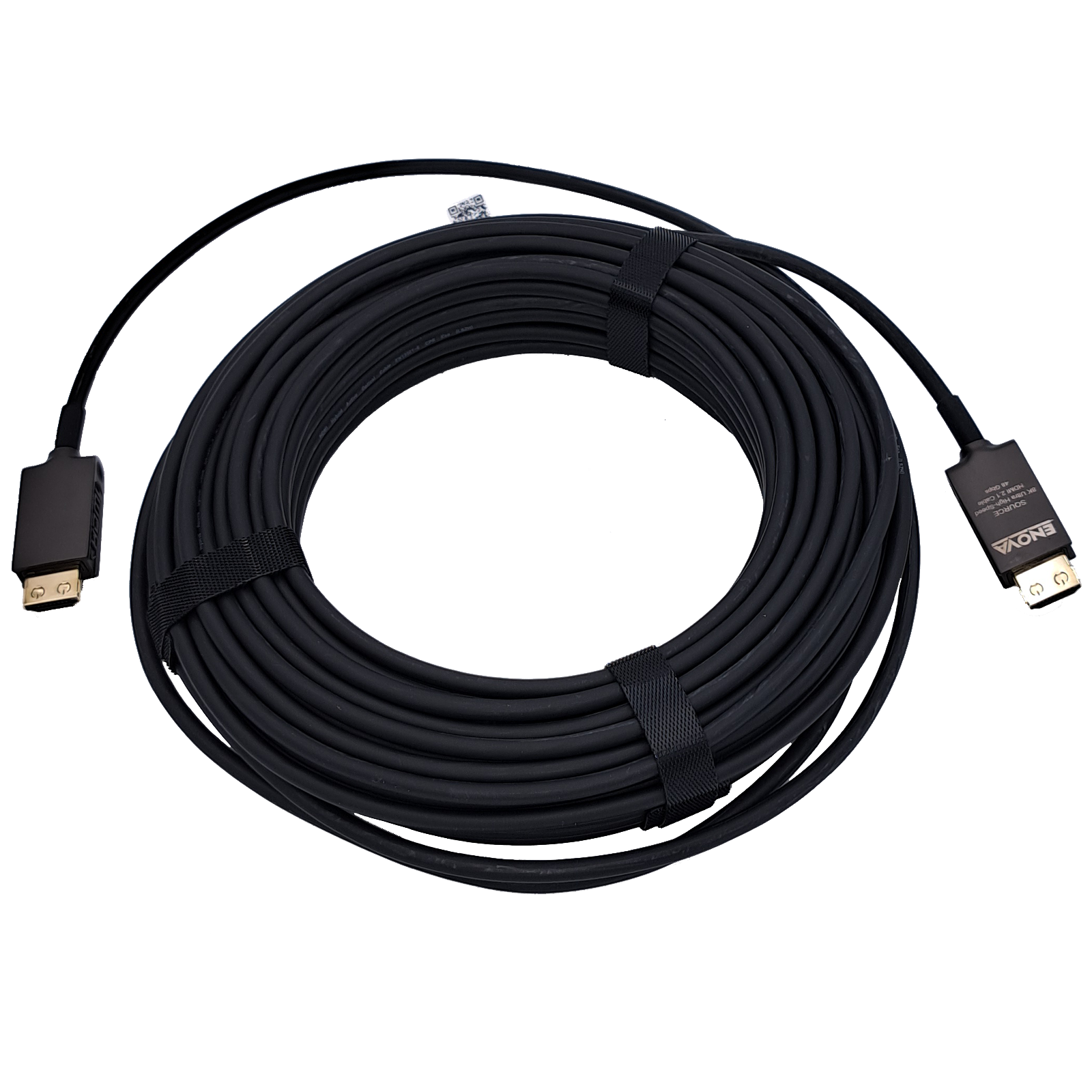 ENOVA HDMI 2.1 AOC (Active Optical Cable) erhöht die Bandbreite auf bis zu 48Gbps und kann die High Speed HDMI Übertragungsdistanz auf bis zu 100m mit einem Hybridkabel bestehend aus optischen Fasern (4 x OM3) und Kupferdrähten (7 x OFC) verlängern.