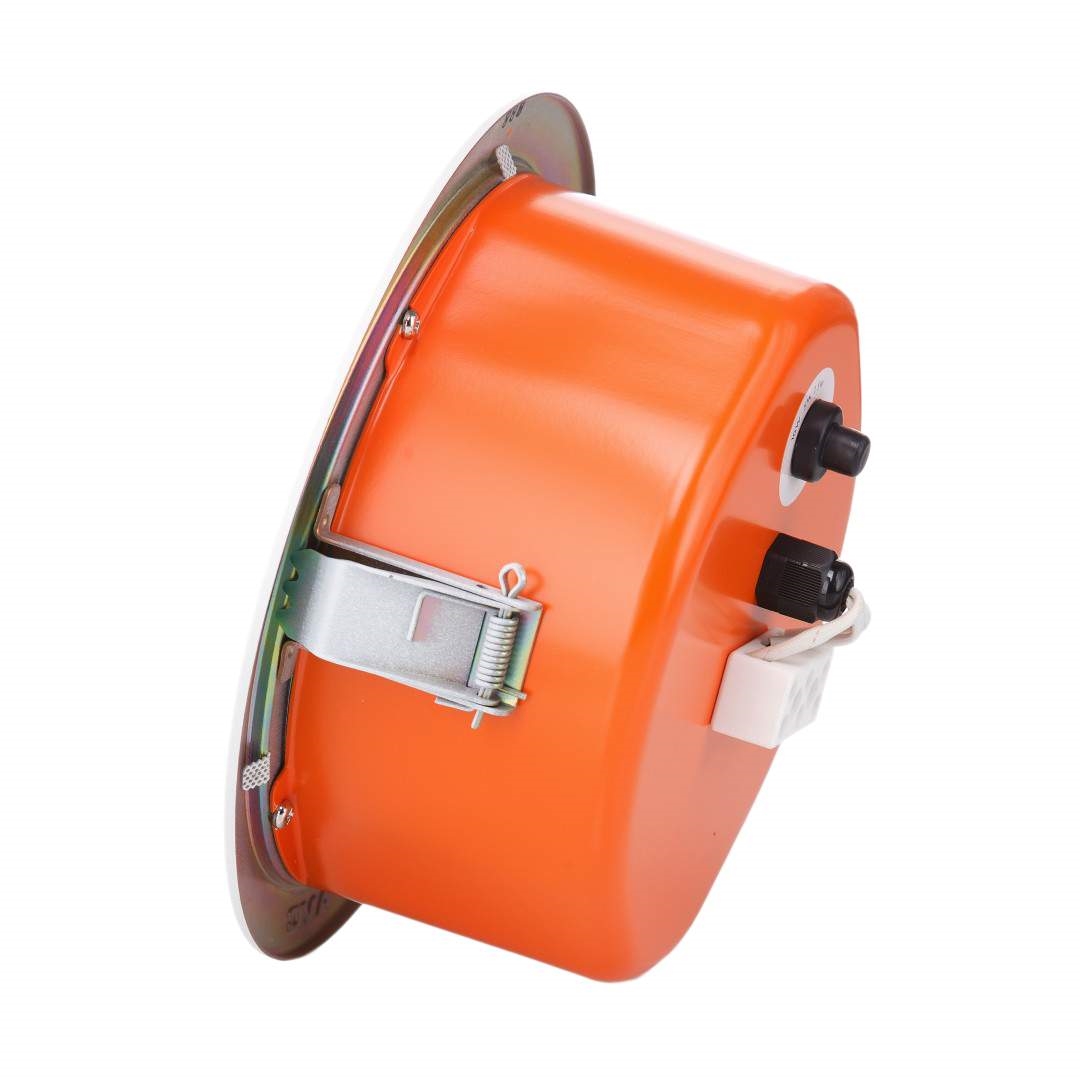 Der Metall-Deckenlautsprecher ist ausgestattet mit einem eingebauten 100 Volt-Übertrager, Metallgitter und Stahl-Feuertopf. Der EVAC 6 eignet sich für den Einbau in hängende Decken oder Platten. In Übereinstimmung mit der Norm EN 60849 ist er ideal für Hintergrundmusik und Sprachdurchsagen und ist geeignet für den Einsatz in der Sprach-Alarm-Anwendung. Der EVAC 6 enthält eine Keramikklemme und eine Thermosicherung.