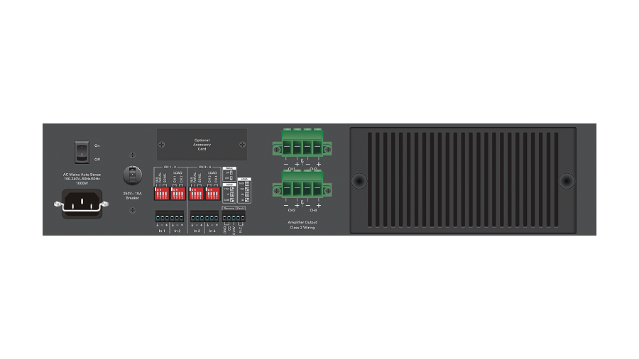 The AtlasIED High Power Amplifier “HPA” Series is designed for use in both commercial 70V/100V distributed systems and professional applications that require amplifiers to handle multiple impedance loads. The HPA is compact and lightweight in comparison to other models delivering similar power levels. The HPA Series features Generation II Class D Output topology that provides great efficiency with the sound quality of a Class AB amplifier. The power supply is a switch mode, global auto sensing design that maintains a stable output during fluctuating power conditions. The power supply and output stage collectively are designed to deliver exceptional dynamic high output voltage and current to virtually any speaker load.