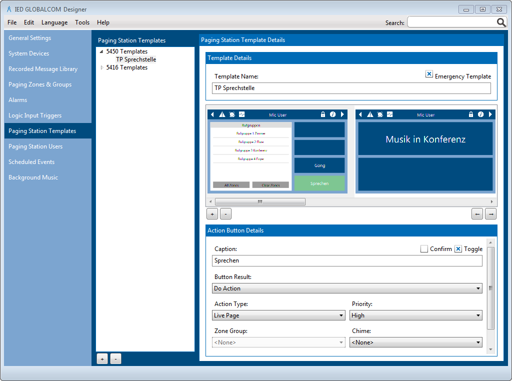 Die GLOBALCOM® 5400 Series Designer Software ist einfach in Handhabung und Struktur. Sie ist ausgelegt für schnellste Projekterstellung und Übersicht: