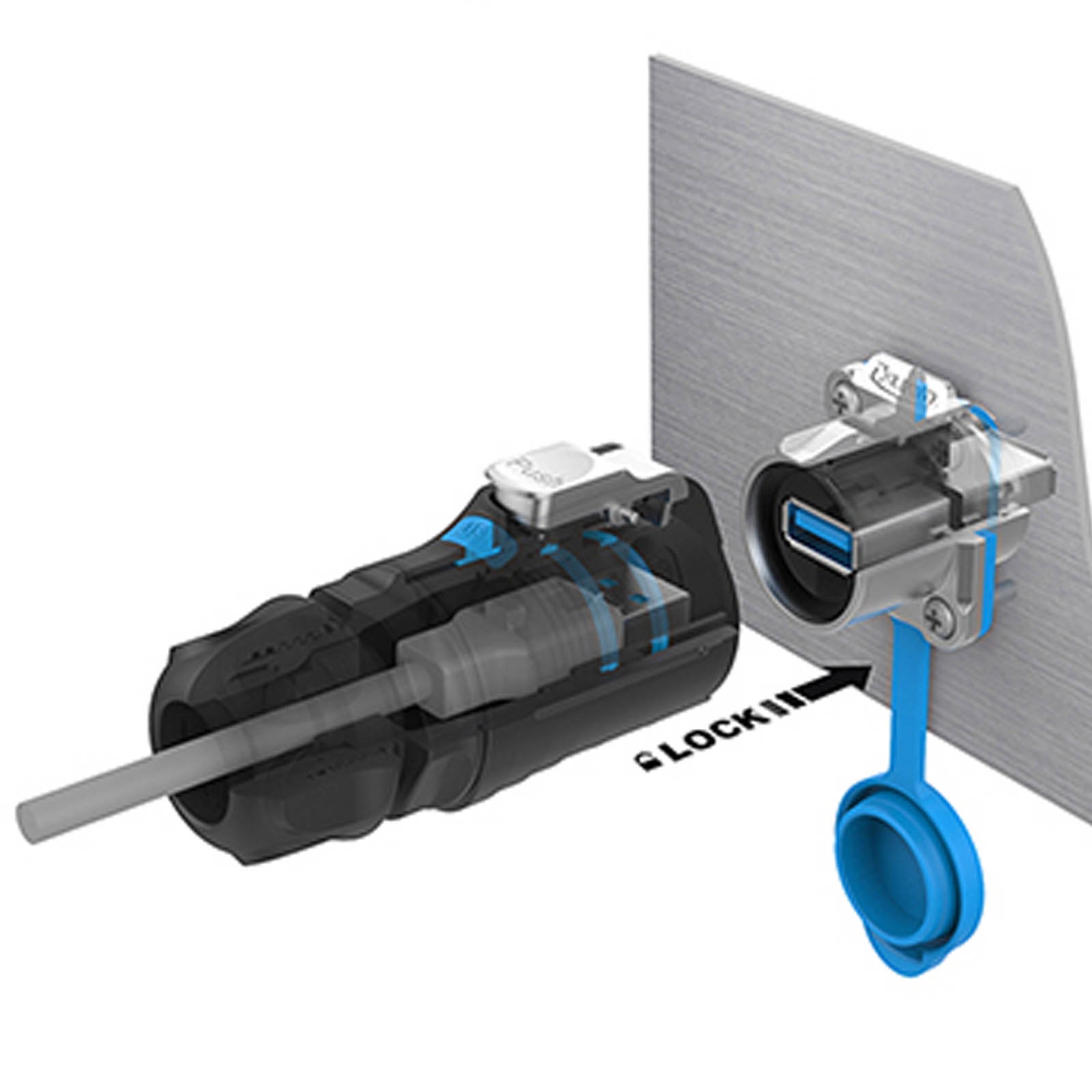 Hochleistung USB 3.0 Kabelstecker mit Schnellsteckverbindung und Verriegelung für eine sichere Signalübertragung auf der einen Seite.
