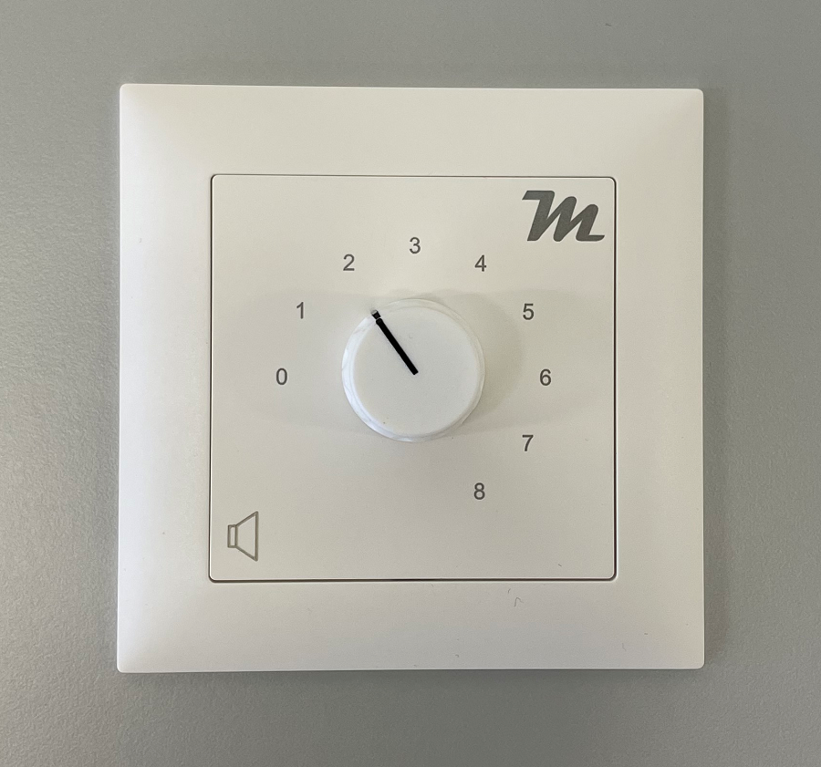 Der Lautstärkesteller LS50RUPSTANDARD mit Abdeckrahmen 1-Fach, Zentralplatte und Knebel, Farbe reinweiß, mit serienmäßigem 24 Volt Pflichtempfangsrelais zur Unterputzinstallation von 50 Watt hat einen 12-stufigen, durchdrehbaren Dämpfungsschalter und eine Nullstellung ohne Restlautstärke