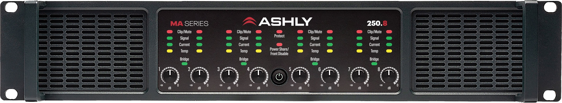Available in 4 & 8-channel configurations with 250W or 500W per channel, there’s an MA that’s right for your project. Push them hard. They can take it. MA amps can drive longer and louder than amps twice their rated power and cost. Powerful. Clean. Reliable. That’s Ashly’s MA Series.
