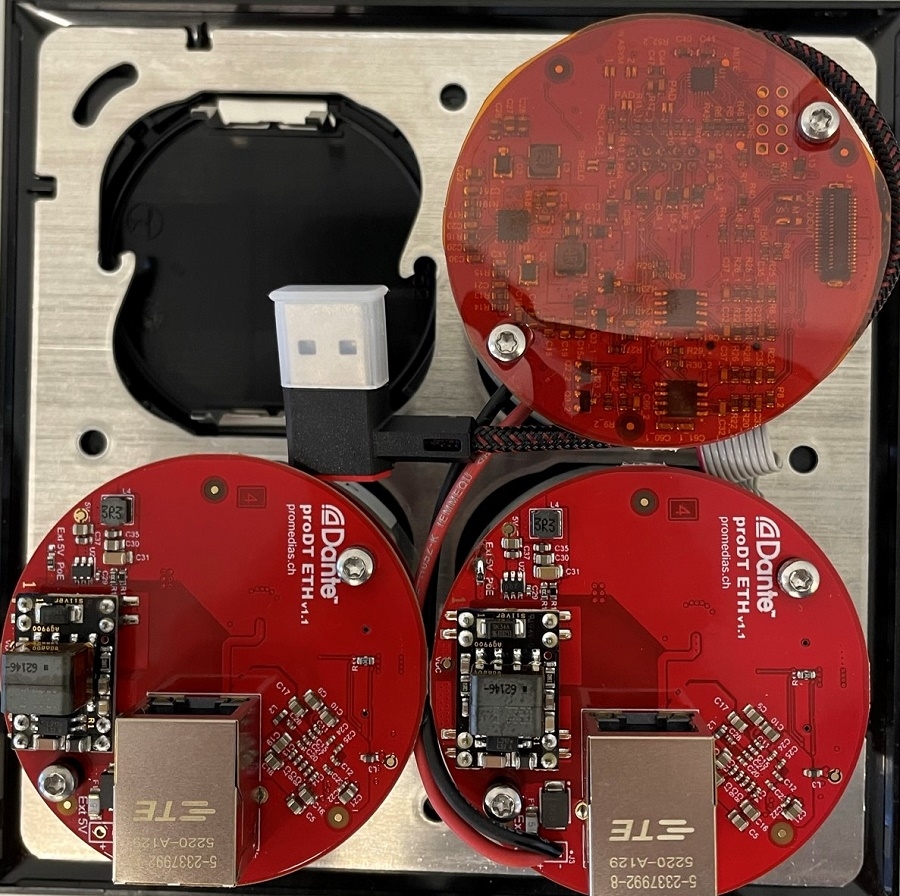 Sie basiert auf der Technologie und Möglichkeiten des Dante BroadwayTM Chip von Audinate® und bietet digitale Audioübertragung via Netzwerk in hoher Qualität mit einer Samplerate von bis zu 192kHz und dies bei einer minimalen Latenz von nur 0.25ms. Die Module sind AES67 fähig und DDM Dante Domain Manager ready. Sie werden direkt via PoE Power over Ethernet mit Spannung versorgt und können aber auch mittels externen 5Vdc betrieben werden. Die verbaute Netzwerkkarte lässt eine Geschwindigkeit von 1Gb/s zu und ist auch mit 100Mb/s Netzwerken kompatibel. Es werden symmetrische und asymmetrische Audioanschlüsse, wie auch Kombinationen davon angeboten.