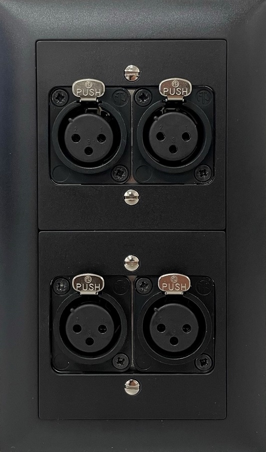 Unterputzanschluss proDT® mit 4x XLR Input female auf Dante, EDIZIOdue, schwarz;