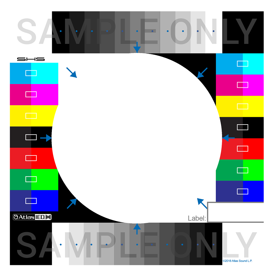 The easiest way to ensure AtlasIED can properly match the ceiling material is to upload a high quality image. Using our custom SHS Camera Target, which AtlasIED will ship to you once your SHS-CUST order has been processed, it is easy to take and upload an image of the material. The image is then processed to render a customized printed sample. Download the custom image guidelines HERE.