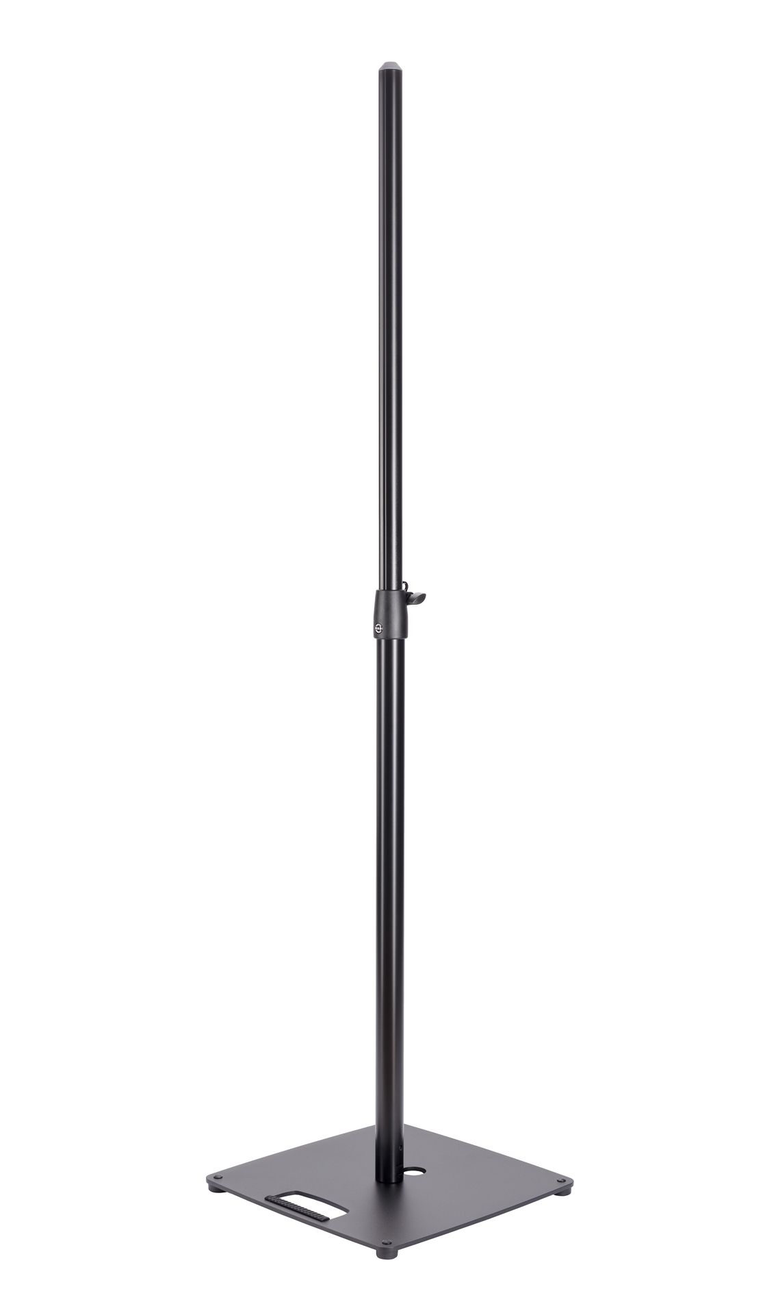 Dekoratives Boxenstativ mit flacher Stahlplatte, praktischem Tragegriff und Kabeldurchführung. Das Stativ ist bestens für den Einsatz bei geringem Platzbedarf geeignet. Die Höhe wird mit einem Sicherungshaken fixiert und per Klemmschraube geräuscharm und spielfrei gesichert. Das schlanke Design der Spannschelle ermöglicht einen platzsparenden Transport und sorgt für ein dezentes Erscheinungsbild. Die nutzbare Höhe liegt zwischen 1.135 und 1.835 mm und wird in 5 Stufen zu 140 mm erreicht. Die max. Belastbarkeit bei Vollauszug beträgt 15 kg.