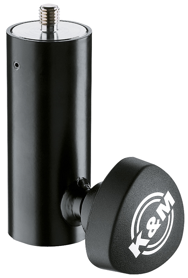 Passend für alle K&M-Boxenstative-Ø 35 mm. Mit Gewindezapfen 3/8" x 12 mm und großer Klemmschraube zum Arretieren am Stativ.