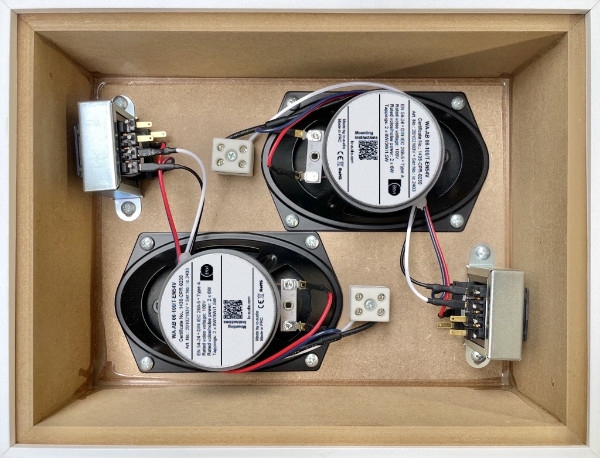Wandaufbaulautsprecher, Zertifizierung gemäss EN 54-24, mit hochwertigem 2x 127 mm- Oval-Breitband-Lautsprecher-Chassis für A/B-Verkabelungen. Die attraktive WA-Serie mit hochverdichtetem MDF-Holzgehäuse für resonanzarmen Klang ist vielseitig einsetzbar, beispielsweise zur Beschallung von Behörden, Schulen oder Krankenhäusern. Der Lautsprecher ist mit Keramikklemmen, Thermosicherungen und feuerfesten Litzen bestückt, um im Brandfall einen Kurzschluss des Lautsprechers zu verhindern, und hat feuchtigkeitsimprägnierte Chassis.